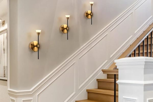 Le luci da parete a scalino sono disponibili in diverse varietà famose, che differiscono per funzionalità e bellezza. Le case moderne e gli appartamenti duplex preferiscono applique a parete con illuminazione verso l'alto e verso il basso. Questi apparecchi sono realizzati utilizzando punti luce verticali morbidi e producono un effetto drammatico senza rendere le scale insicure. Faretti a LED o luci da parete incassate per scale Come alternativa, si possono installare luci da scalino a LED o luci da parete incassate sopra ogni gradino, più vicino alla parte inferiore del muro, per fornire un'illuminazione più vicina e a bassa visibilità che evidenzia la sicurezza.